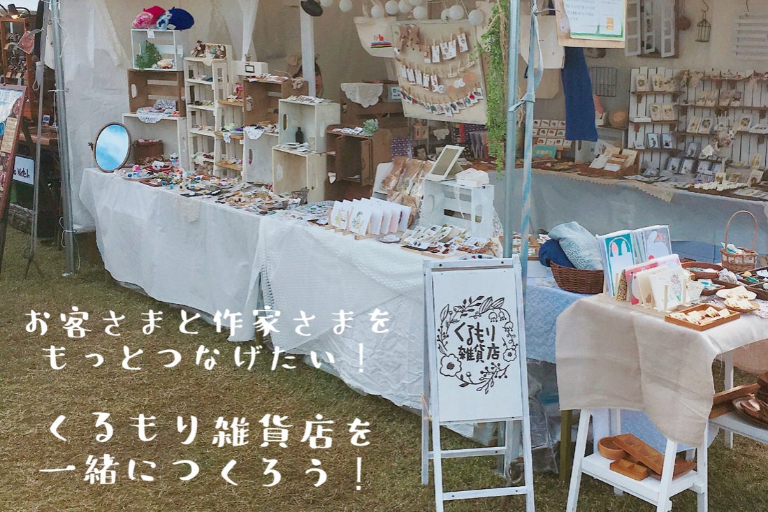 わくわくどきどきのくるもり雑貨店を、お客さまと作家さまが常につながる拠点を、そんな空間をいろいろな方と一緒に作りたいと思い、このプロジェクトを立ち上げました。