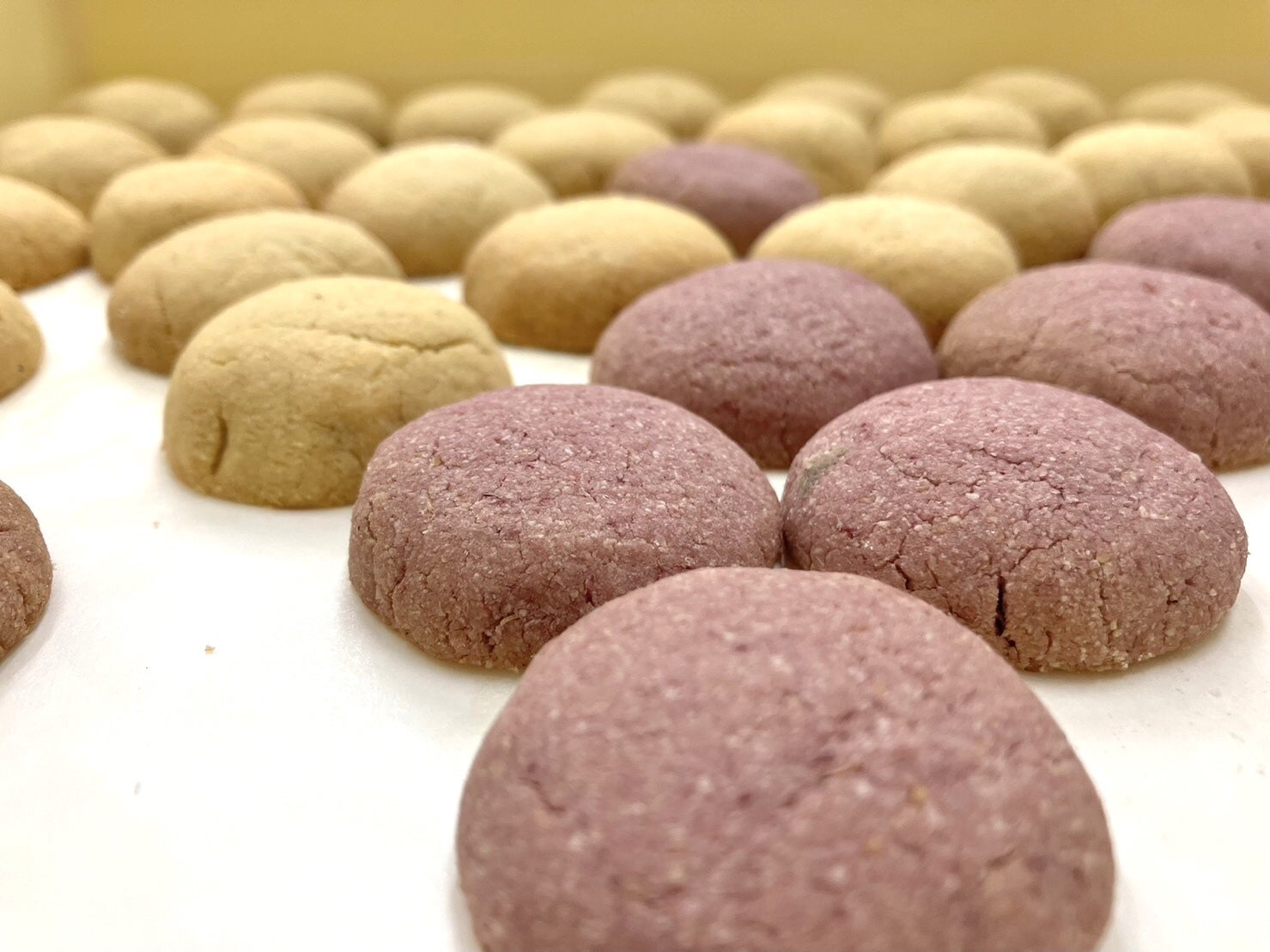 イタリア人パティシエの作るバーチディ・ダマはサクほろ食感でしっとりとしている逸品で日本の小麦粉ではなかなか再現する事が出来ませんでした。