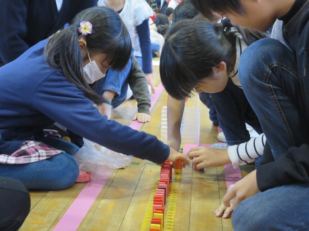 五十嵐小の全校児童を対象にしたドミノ企画!
