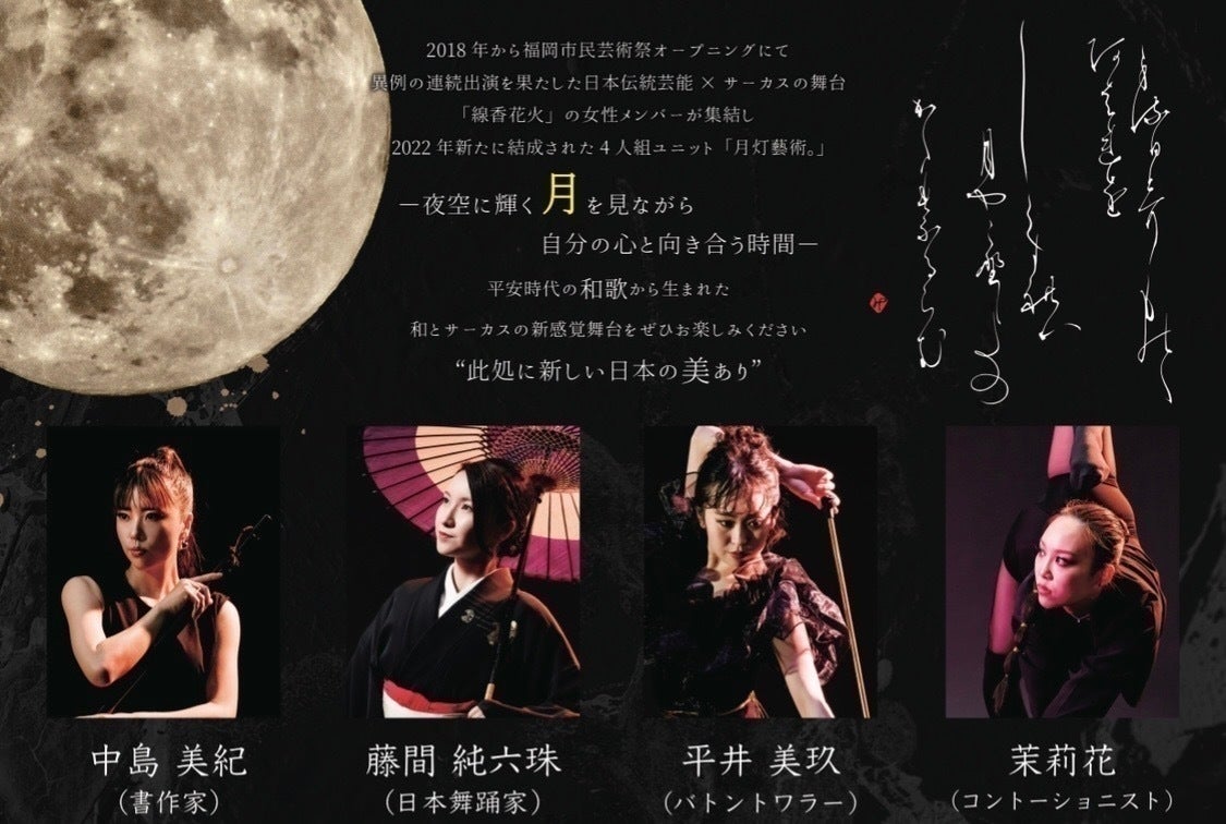 2018年から福岡市民芸術祭オープニングにて異例の連続出演を果たした、日本伝統芸能×サーカスの舞台「線香花火」の女性メンバーが集結し、2022年新たに結成された4人組ユニットです!