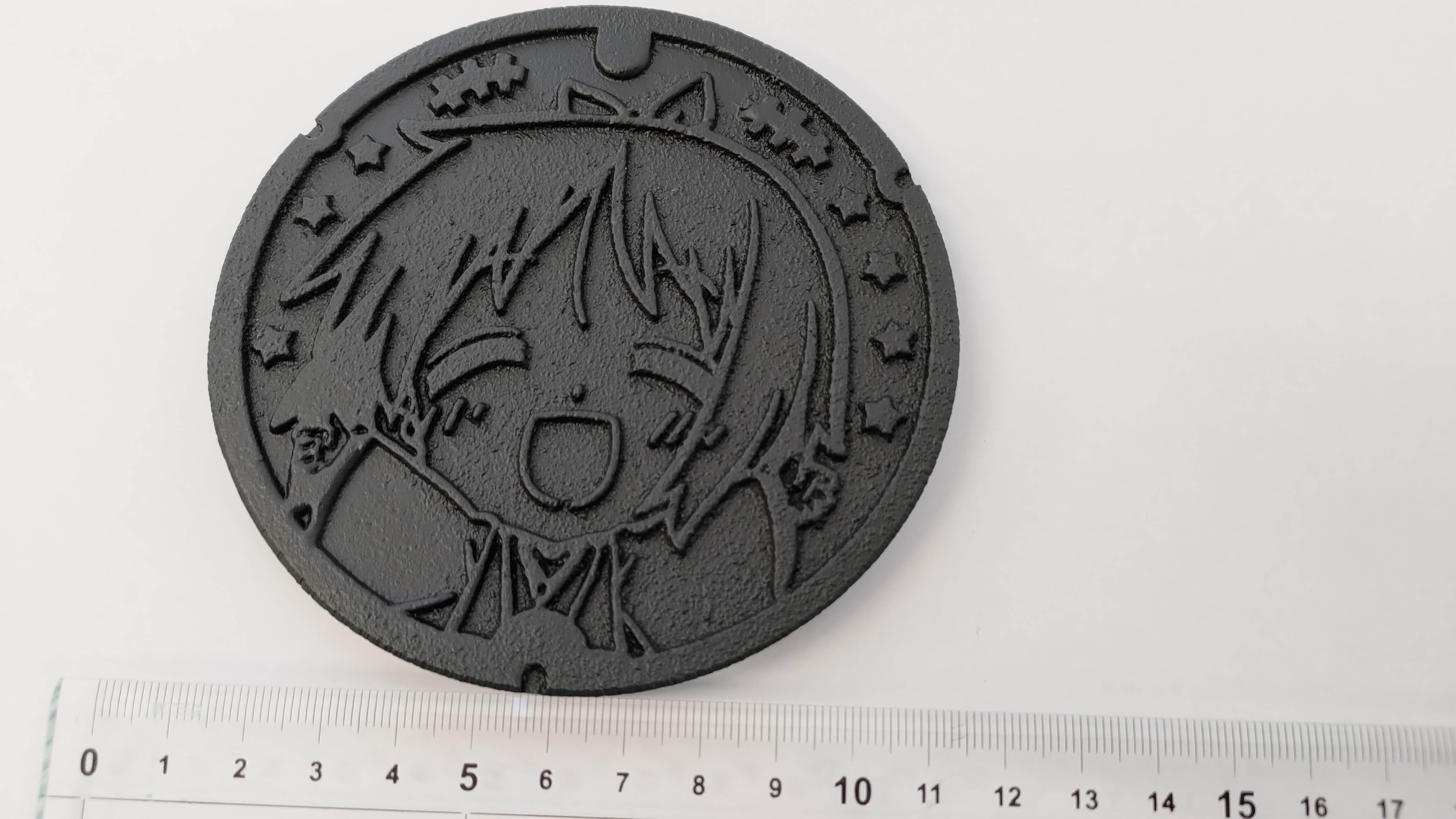 6分の1サイズとはいえ、実際のマンホールに使われている材料と錆止め塗装により、質感・重量感共に完成度の高い一品となっております。