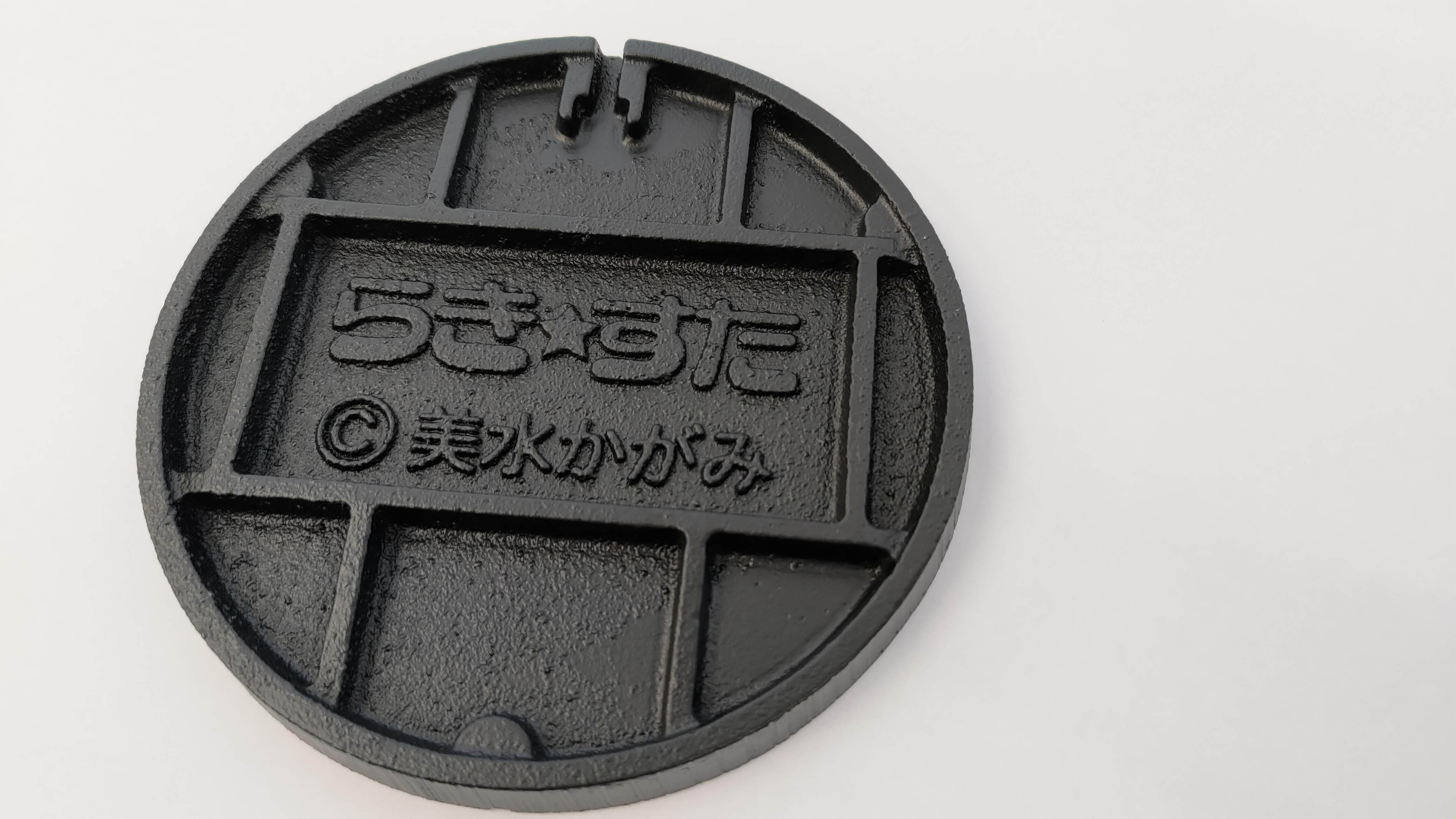 また、こちらのミニマンホールの裏面(らき☆すたロゴ側)には、シリアルナンバーをレーザー刻印させていただく予定です。