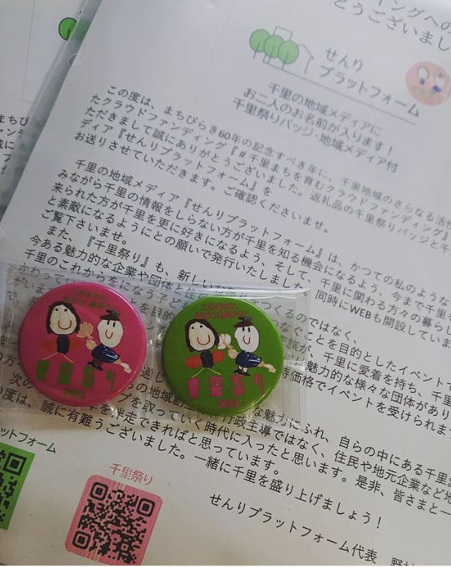 先日、出来上がったロゴをバッジにした『千里祭りバッジ』の付いた