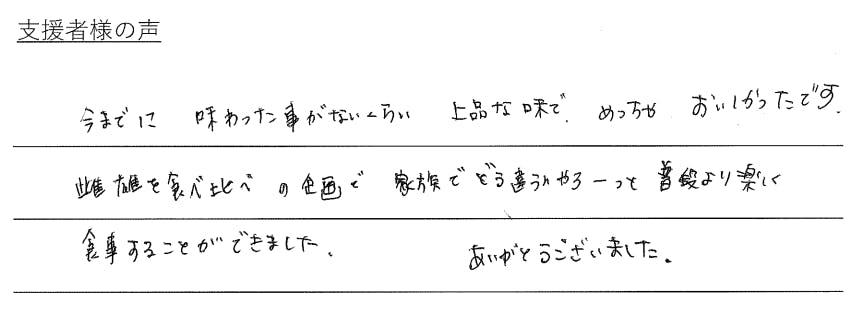 また、ご支援のみならず、あたたかいお言葉をいただきました。