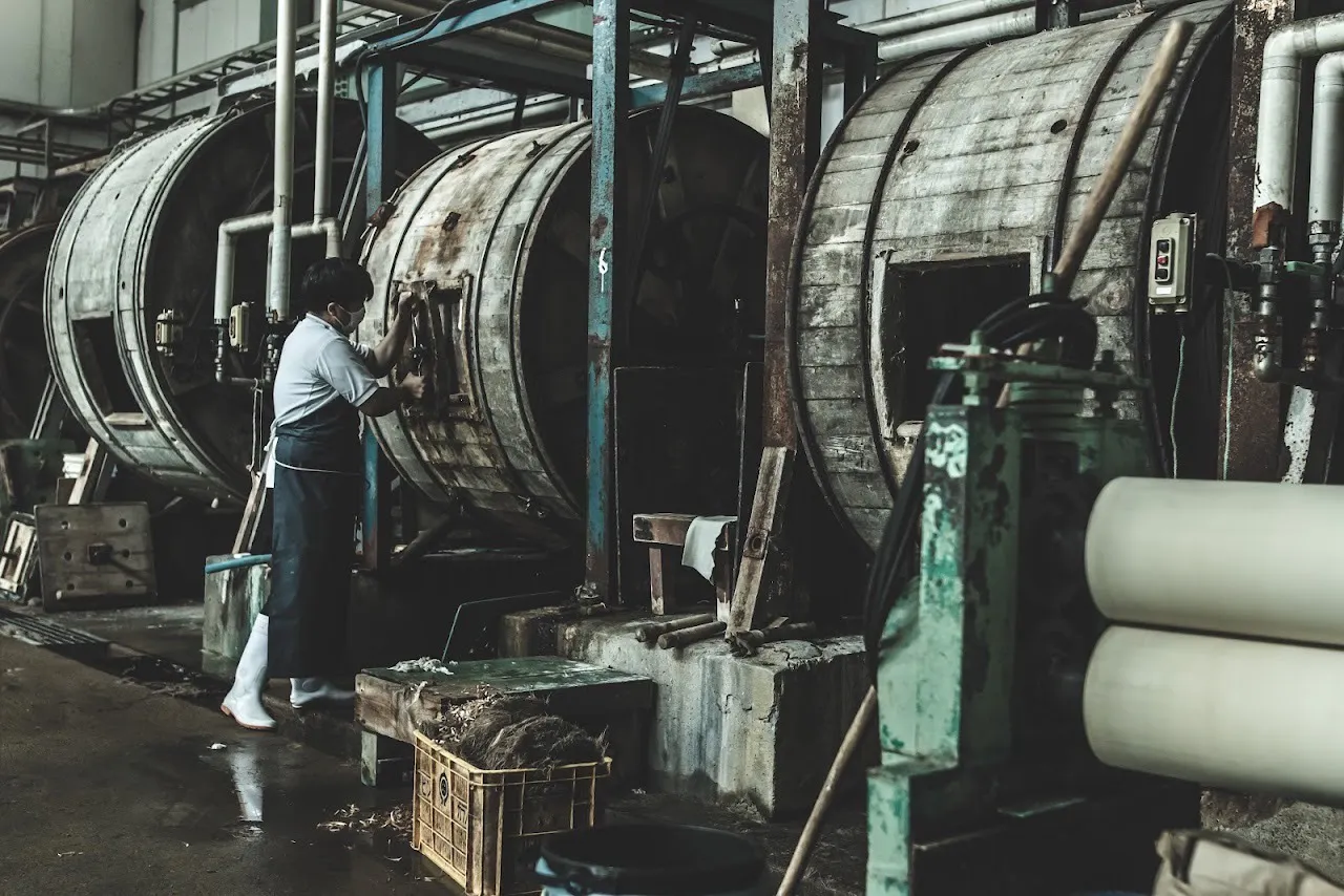 「なめし」とは原皮の硬質化や腐敗の防止、耐熱性を持たせるために行う工程です。