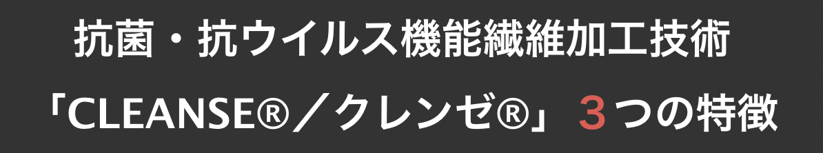 ※「CLEANSE®/クレンゼ®」は、固定化抗菌成分「Etak®/イータック」を活用し、繊維表面に強力に固定化するクラボウ独自の加工技術です。