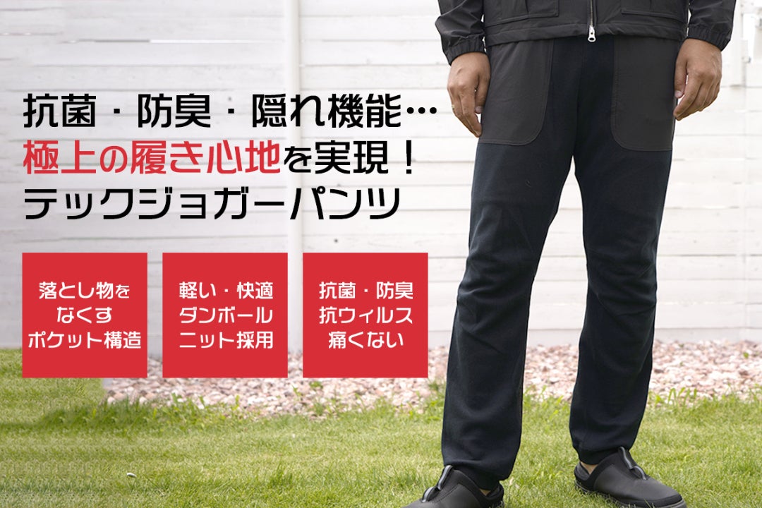 テックジョガーパンツの生地には、繊維上の特定のウイルスの数を99%減少させ、特定の細菌の増殖を抑制する抗菌・抗ウイルス機能繊維加工技術「CLEANSE®/クレンゼ®」を採用しました。