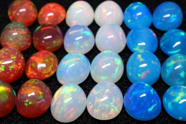 オパールの色と言えば、白が一般的に知られておりますが、今回は白、青、赤の3色をご用意させていただきました。私達は、これらのオパールを総称して、トリコロール(=3色《白・青・赤》の意味)オパールと名付けました。