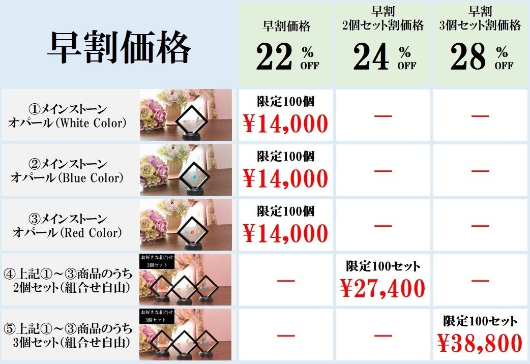 一般販売予定価格 18,000円⇒早割22%OFF価格 14,000円(先着100個)