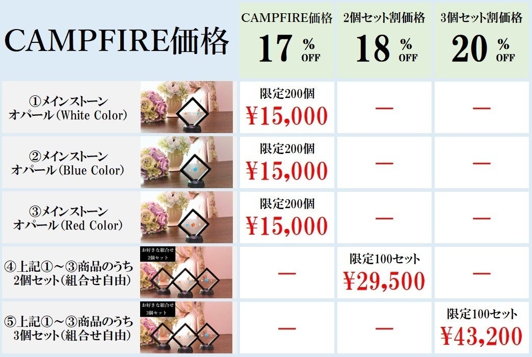CAMPFIRE17%OFF特別価格 15,000円(先着200個)
