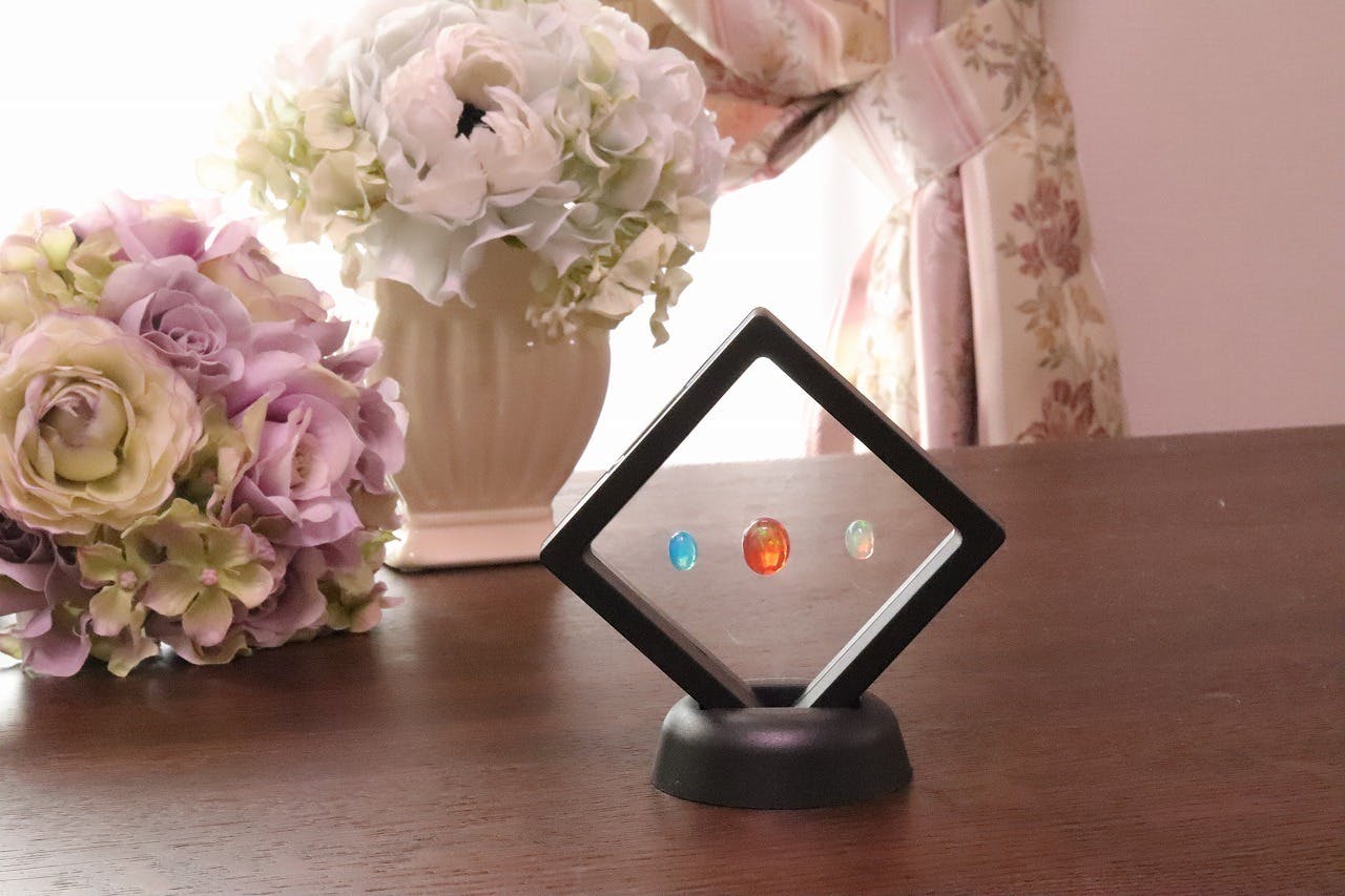 本来、宝石はネックレスやリングとして身に着けて愉しむものですが、私達は抜群の遊色効果を放つオパールを"宝石"として観賞して愉しんでいただきたいと思います。