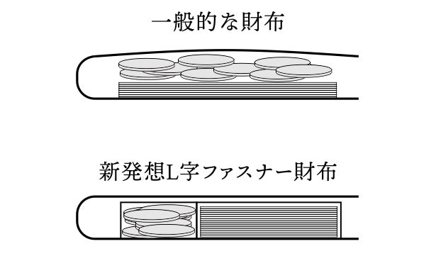 とにかく手間をかけずにサッと収納できる。それが新発想L字ファスナー財布の特長です。