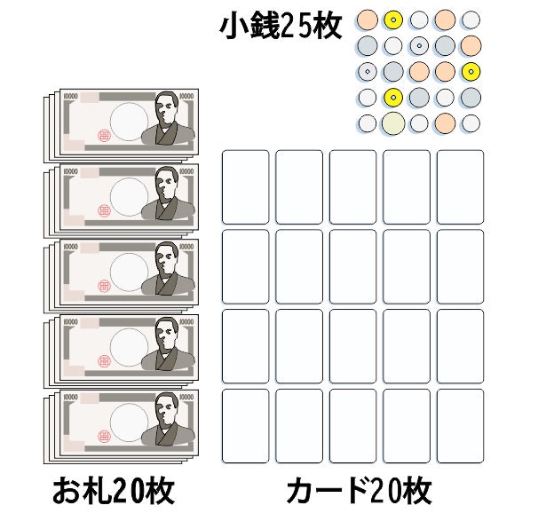 カード 20枚小銭 25枚お札 20枚