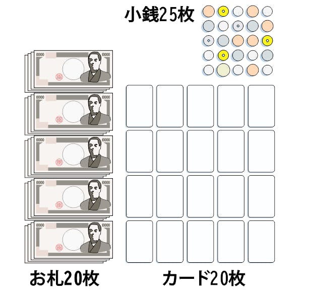 例えば、カード20枚 小銭20枚 お札10枚収納の場合、厚さがおよそ26mmになります。