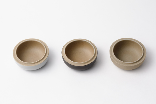 土に含まれる鉄分と透明釉薬が反応してできた繊細な「クリアグレー」。ざらつきのある「マットブラック」。高温で焼き締める“多治見締め”という技法を用いた「クレイベージュ」の3色を採用。それぞれの内側には、土の味わいを活かした素地を採用しています。