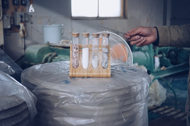 ↑ 代表の松原さんが自ら探し、試行錯誤して採用した多治見締めの良さを活かす土。より茶渋などが色素移りしにくいこの土が[チャプター]に採用されました