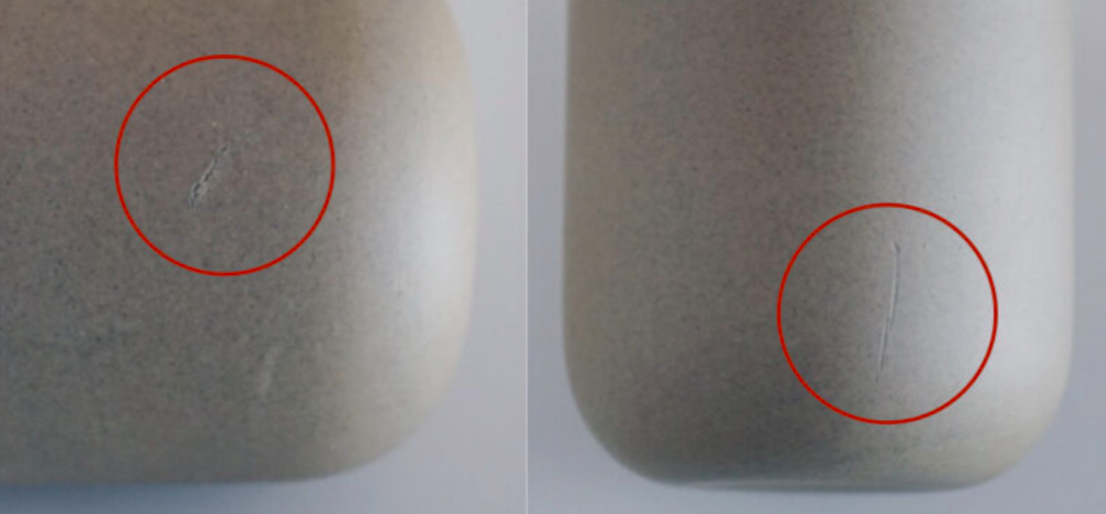 土にロゴを印字する製法の関係で、ロゴ内に白い◯状のかすれが現れることがあります。