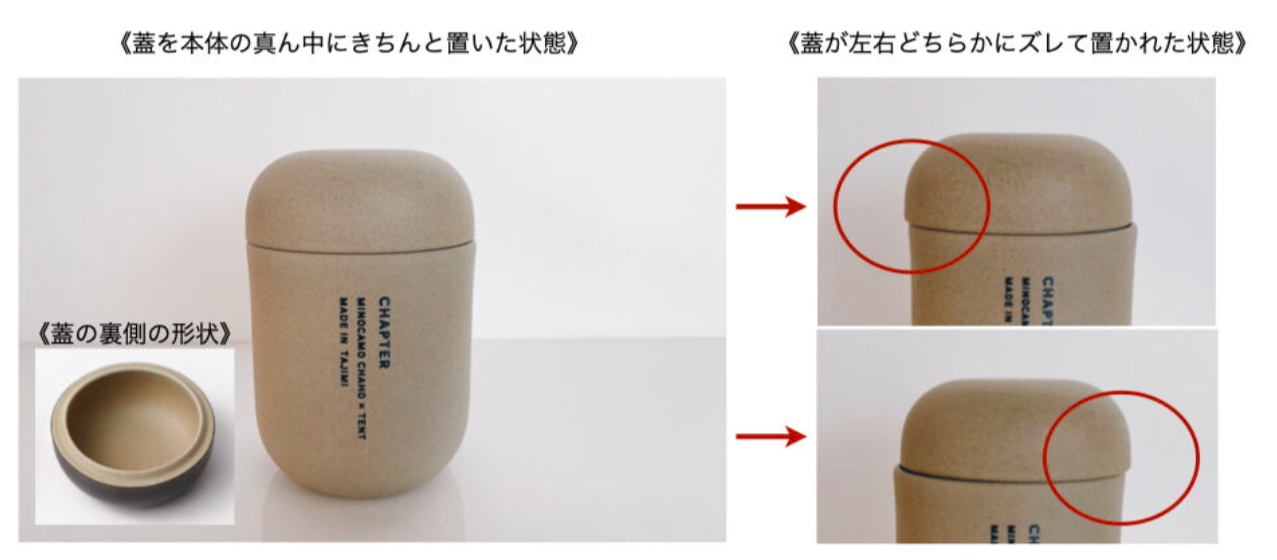 釉薬を蓋や本体の内側にかからないギリギリのラインまで施す製法を取っているため、本体と蓋の組み合わせによっては隙間が開いているように見えます。