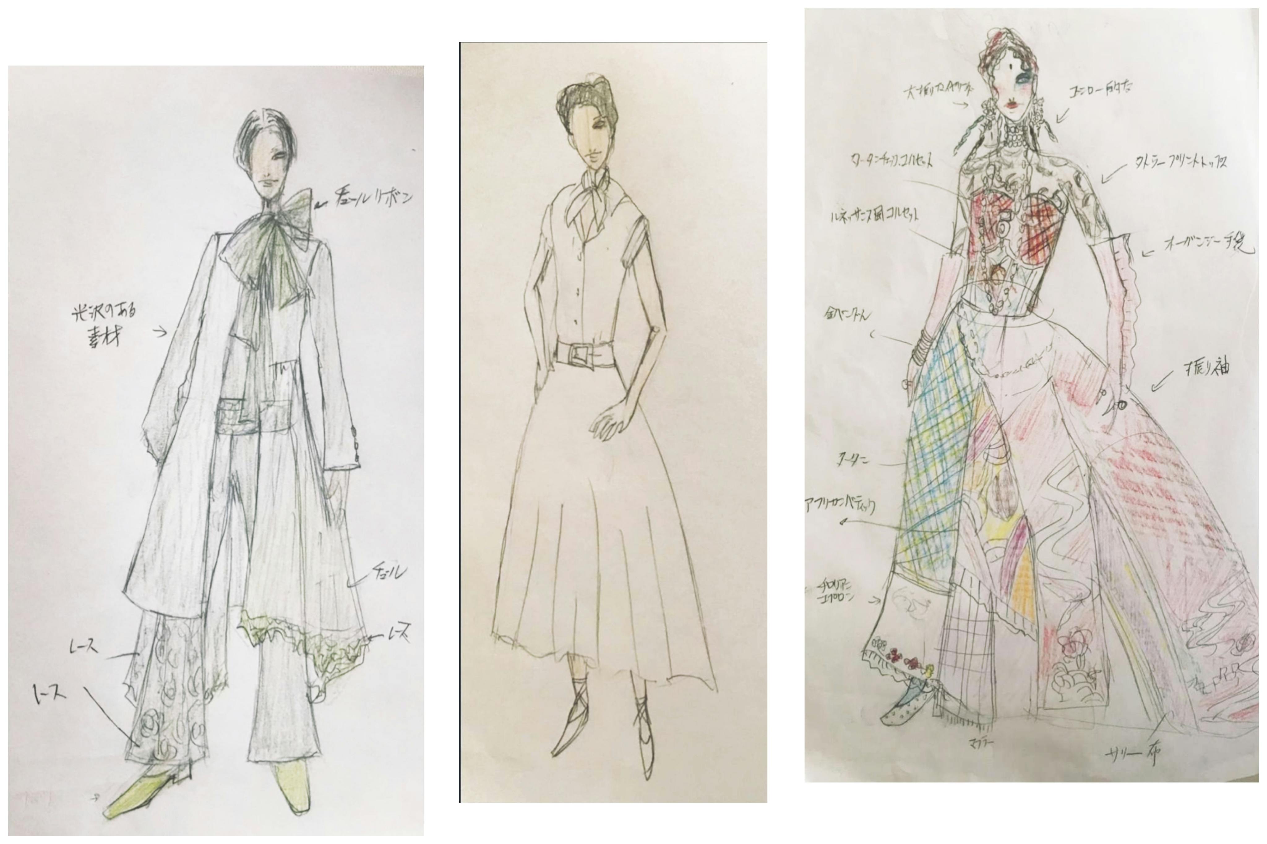 2022/11/30 21:09これは、私が「こんな感じの衣装を着たいです」と何度か打ち合わせさせていただいて、植田さんが描いてくださった衣装のデザイン画です!1着目(左)は、異素材で作ったグリーン一色のパンツスーツ、2着目(中)は、50年代の海外映画女優のようなファッション、3着目(右)は、様々な民族衣装を合体させたカラフルなドレスです。これが植田さんの手により立体化されました!ぜひ写真集でお確かめください。 もっと見る