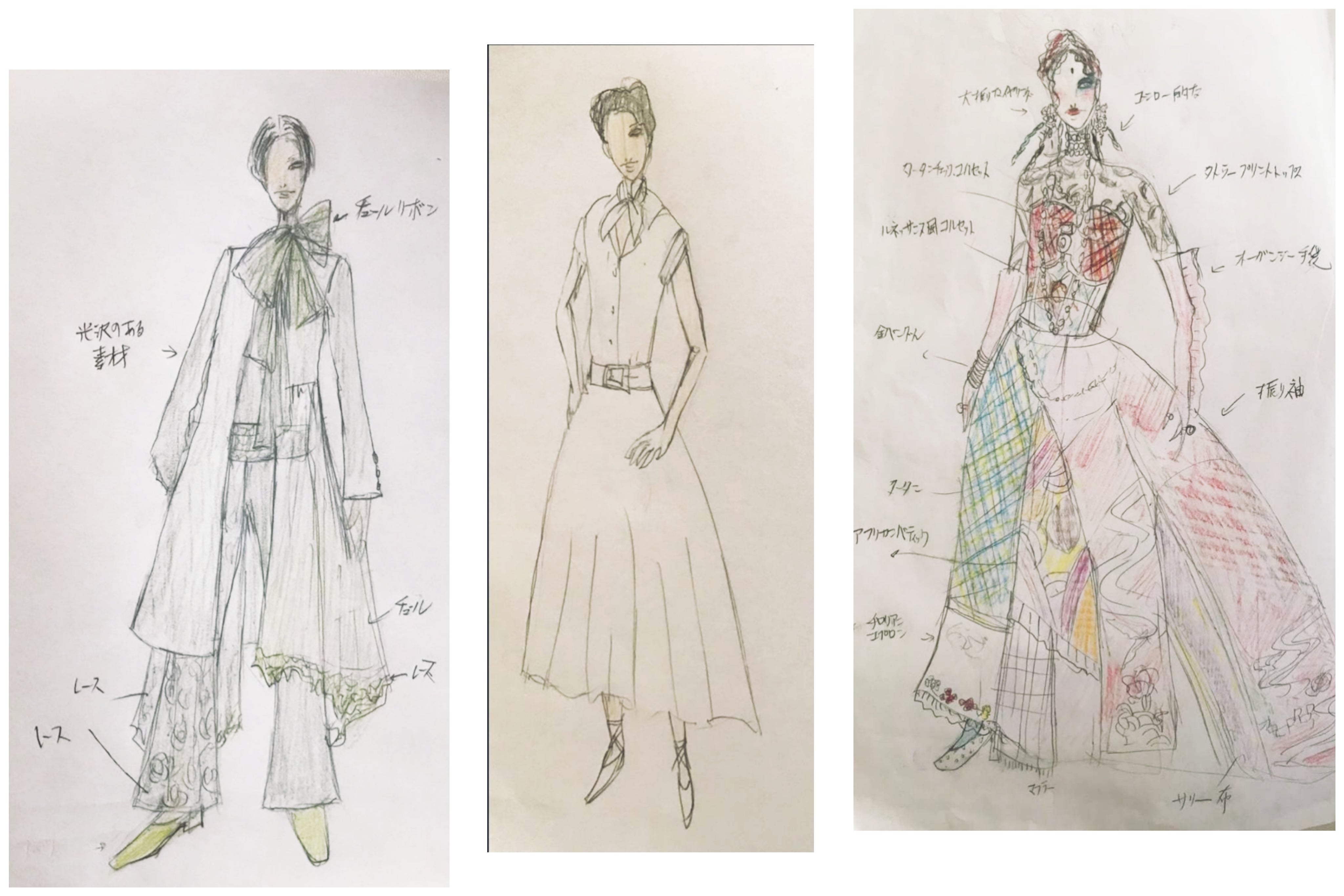 2022/11/30 21:09これは、私が「こんな感じの衣装を着たいです」と何度か打ち合わせさせていただいて、植田さんが描いてくださった衣装のデザイン画です!1着目(左)は、異素材で作ったグリーン一色のパンツスーツ、2着目(中)は、50年代の海外映画女優のようなファッション、3着目(右)は、様々な民族衣装を合体させたカラフルなドレスです。これが植田さんの手により立体化されました!ぜひ写真集でお確かめください。 もっと見る