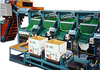 何百トン単位のみかんを捌ききるには、どうしても 大型の自動選果機が必要になってきます。