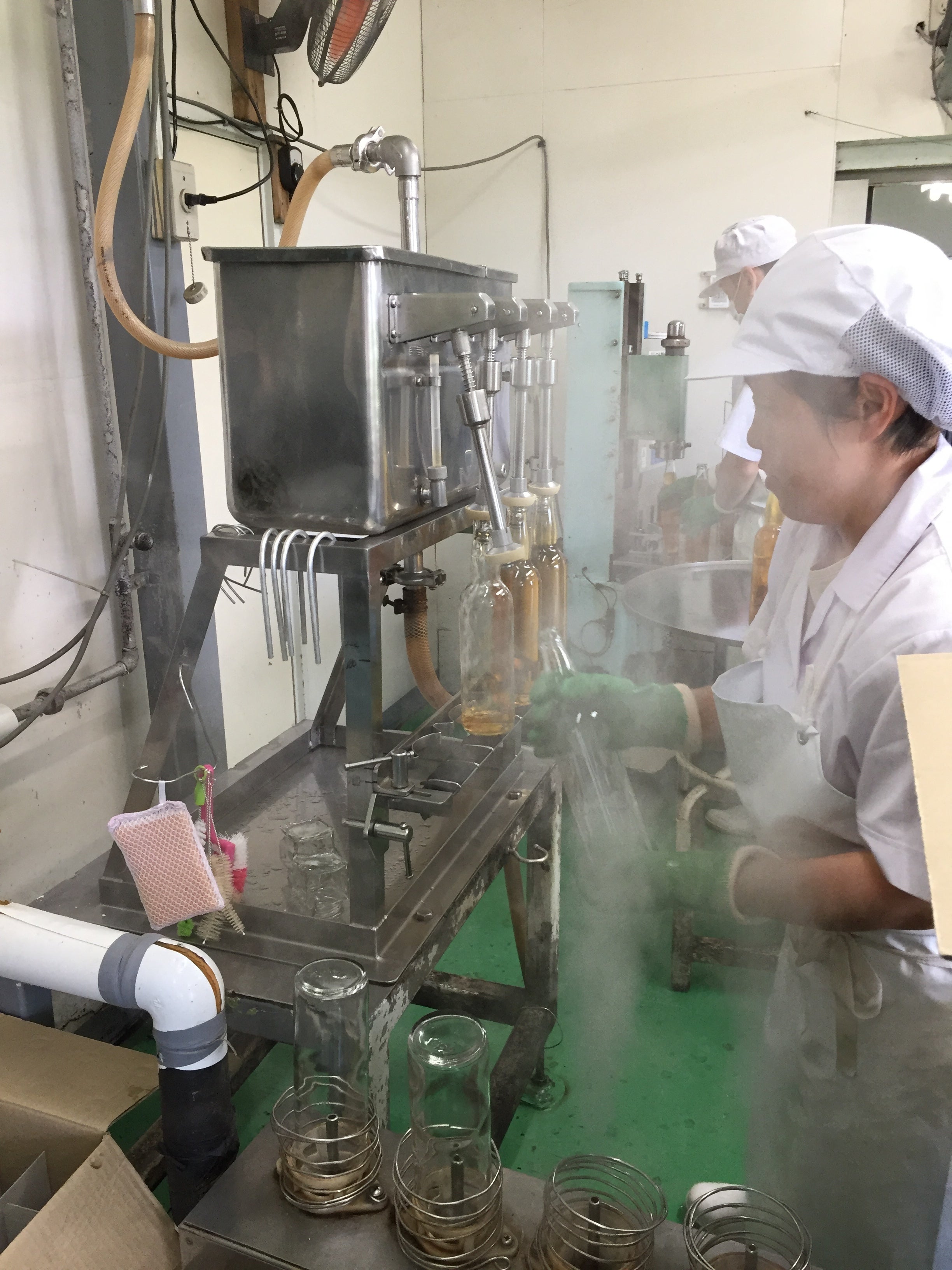 搾ったみかんを充填する様子。ひとつひとつ丁寧に作っています。