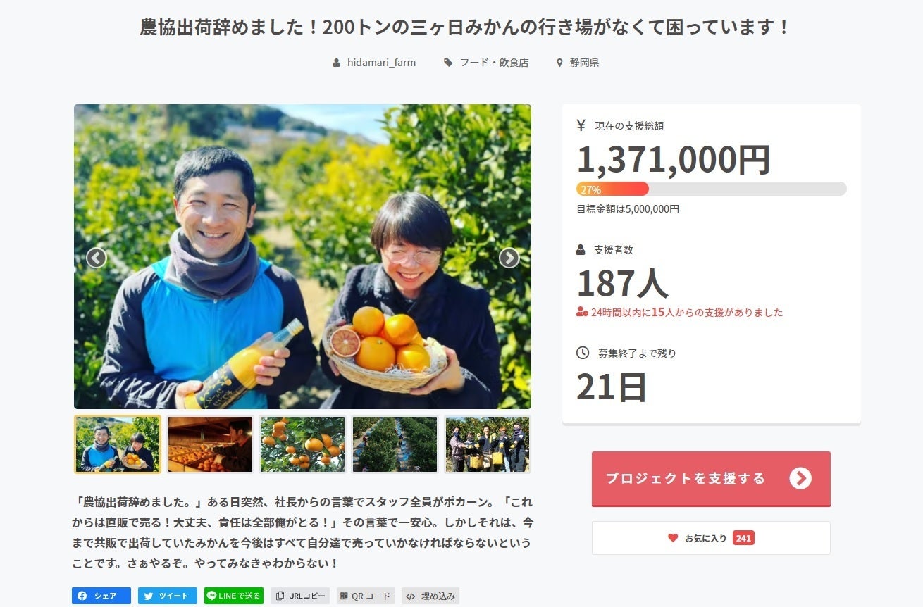 クラウドファンディングに多くのご支援ありがとうございます。