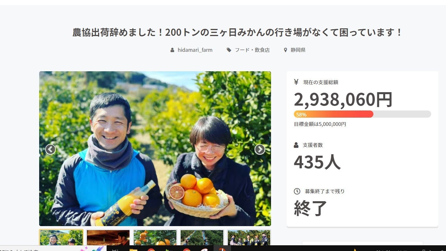 多くの皆様にシェアをして頂いたおかげで、陽だまりファームのみかんを販売したい!!