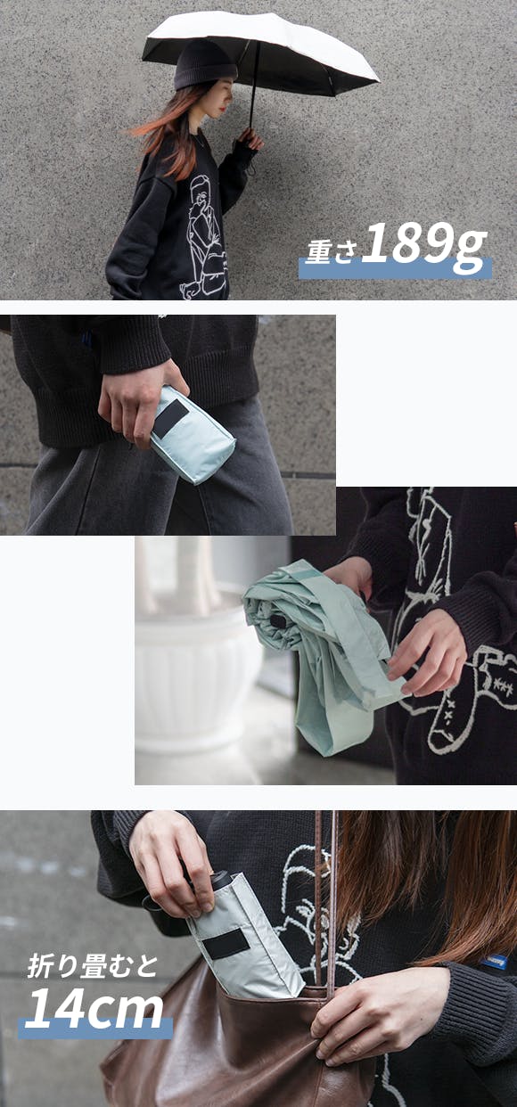 - 持ち歩きに便利な折り畳み傘ですが、畳んでも意外に場所を取ります。お財布とスマホ、折り畳み傘だけで出かけたくても、ズボンのポケットには入りません。もっとコンパクトな折り畳み傘があったらいいなと思いませんか?