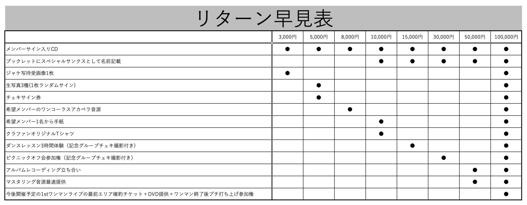 ※100,000円のリターン内容から「希望メンバーのワンコーラスアカペラ音源」が抜けておりますが提供させていただきます。ご希望のメンバーと楽曲名をそれぞれ備考欄にご記入お願い致します。