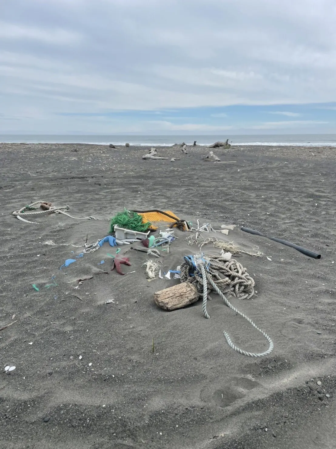 苫小牧市の浜辺に流れ着いたゴミ