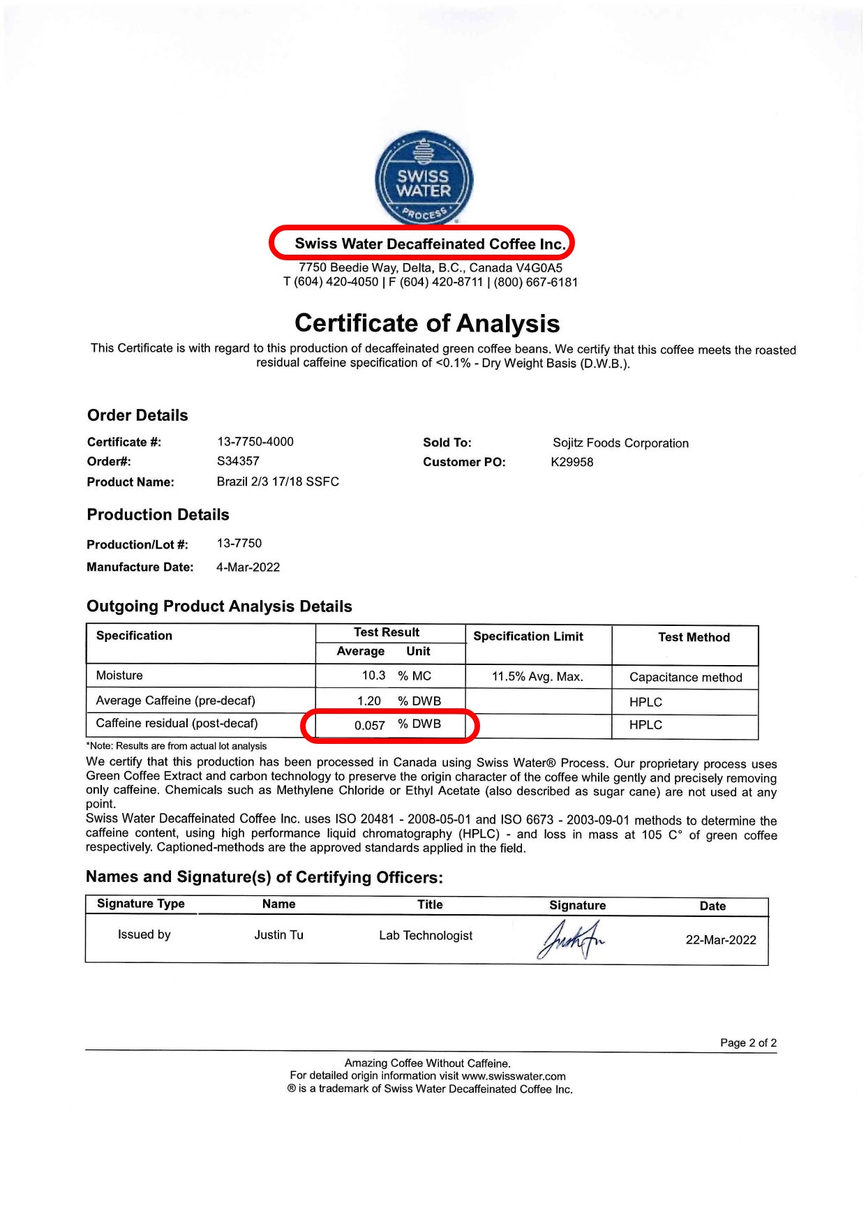 味も香りも上質なデカフェコーヒーに仕上がっています。