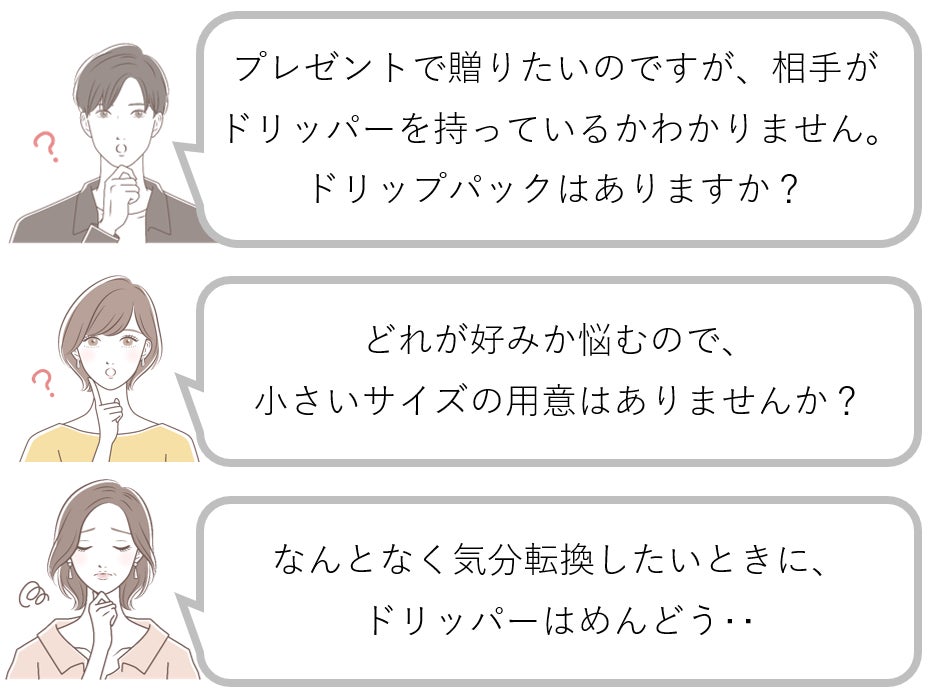 「1杯飲み切りの個包装ドリップパックでお届けしたいから」です。