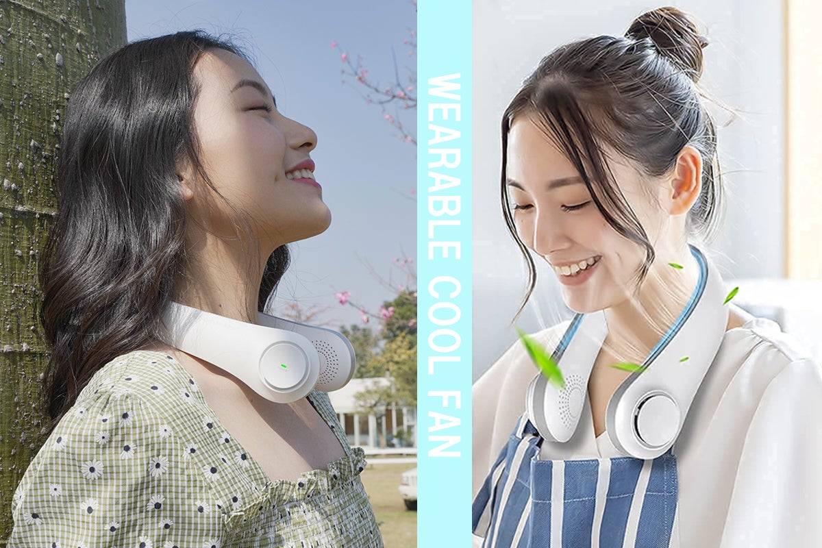 猛暑の中のマスクもこの「WEARABLE COOL FAN(首掛け扇風機)」があれば乗り切ることができます。