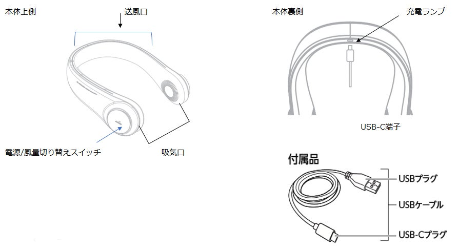 首から掛けて首元に風を送る小型の扇風機になります。
