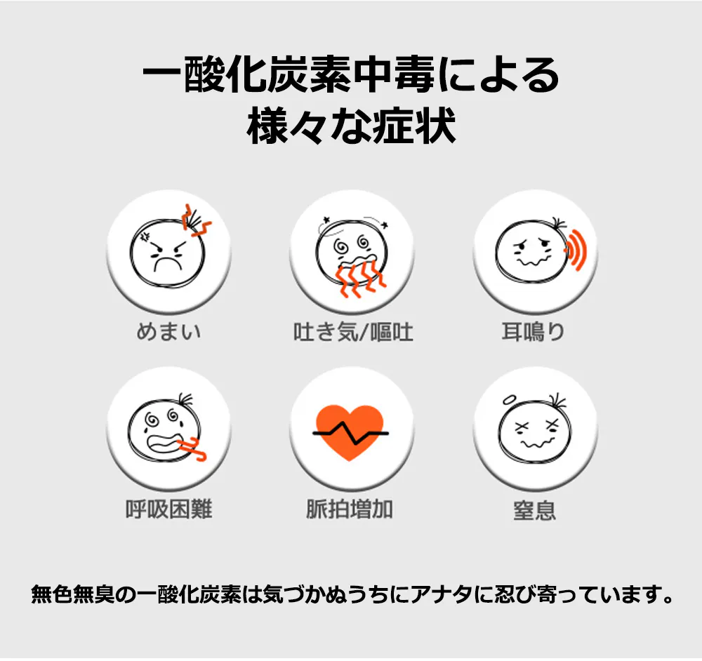 ・一酸化炭素警告機能を使用時、一酸化炭素センサーをオンにしてから約2分の自己補正が
