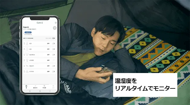 温湿度をリアルタイムでモニターするだけでなく高温や高湿度、低湿度の際にアラームを鳴らすことができ、管理がしやすいためキャンプや旅行を快適に過ごすことができます。