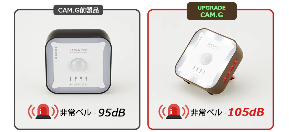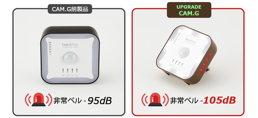 遭難時や墜落事故、アウトドア活動のみならず何らかの緊急事態に陥った場合に活用できる「非常ベル」のアラーム音がより強力(95dB⇒105dB)になりました。不測の事態に備え、愛する家族、特に子ども達の危険に備えることができます。