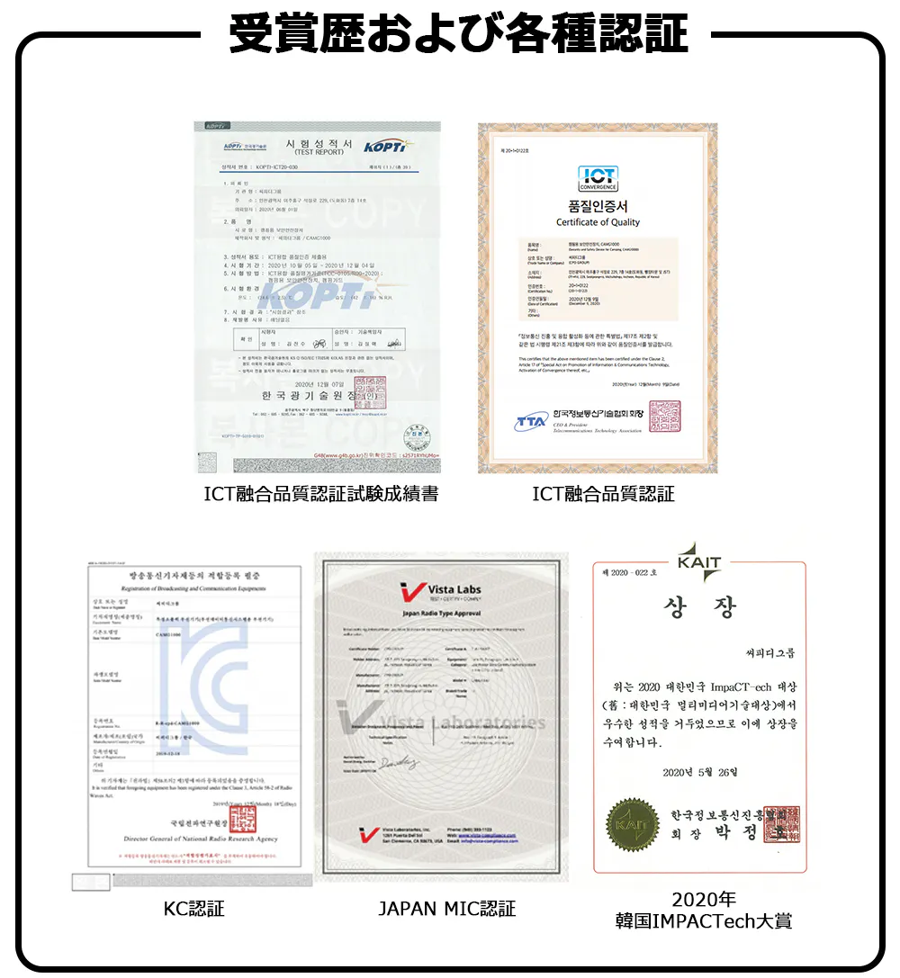 A、 Cam.G PLUSは韓国で開発・製造されています。