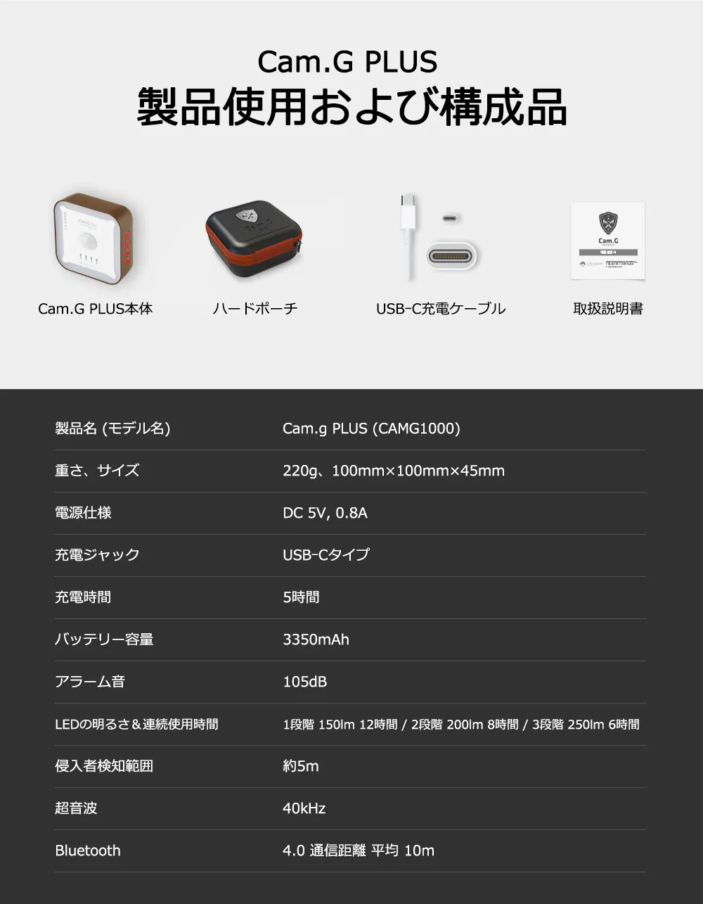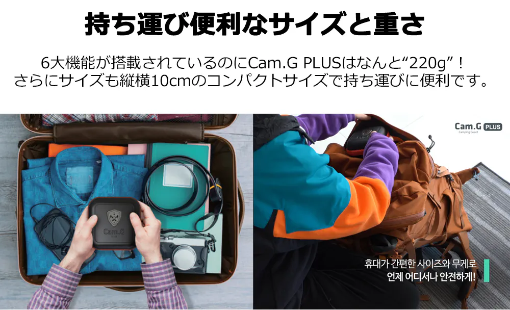 ❷ コンパクト&軽量で持ち運びに便利なポータブルセキュリティツール『Cam.G PLUS』