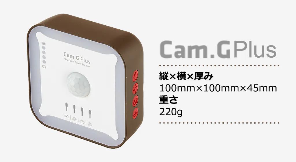 6大機能が搭載されているのにCam.G PLUSはなんと“220g”!さらにサイズも縦横10cmのコンパクトサイズで持ち運びに