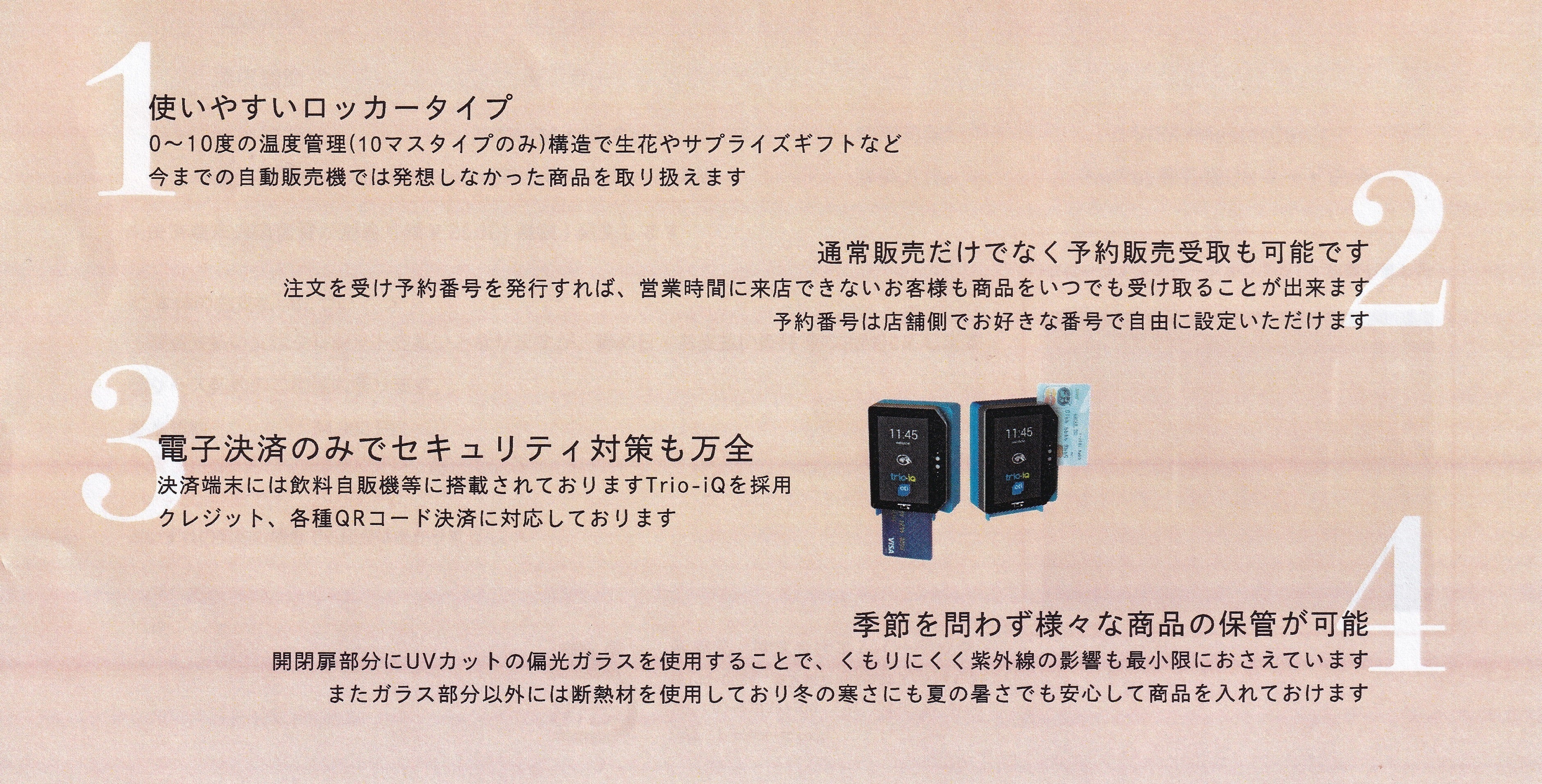 クレジットカード、PayPayなどのキャッシュレス対応のみの機械を取り入れます。