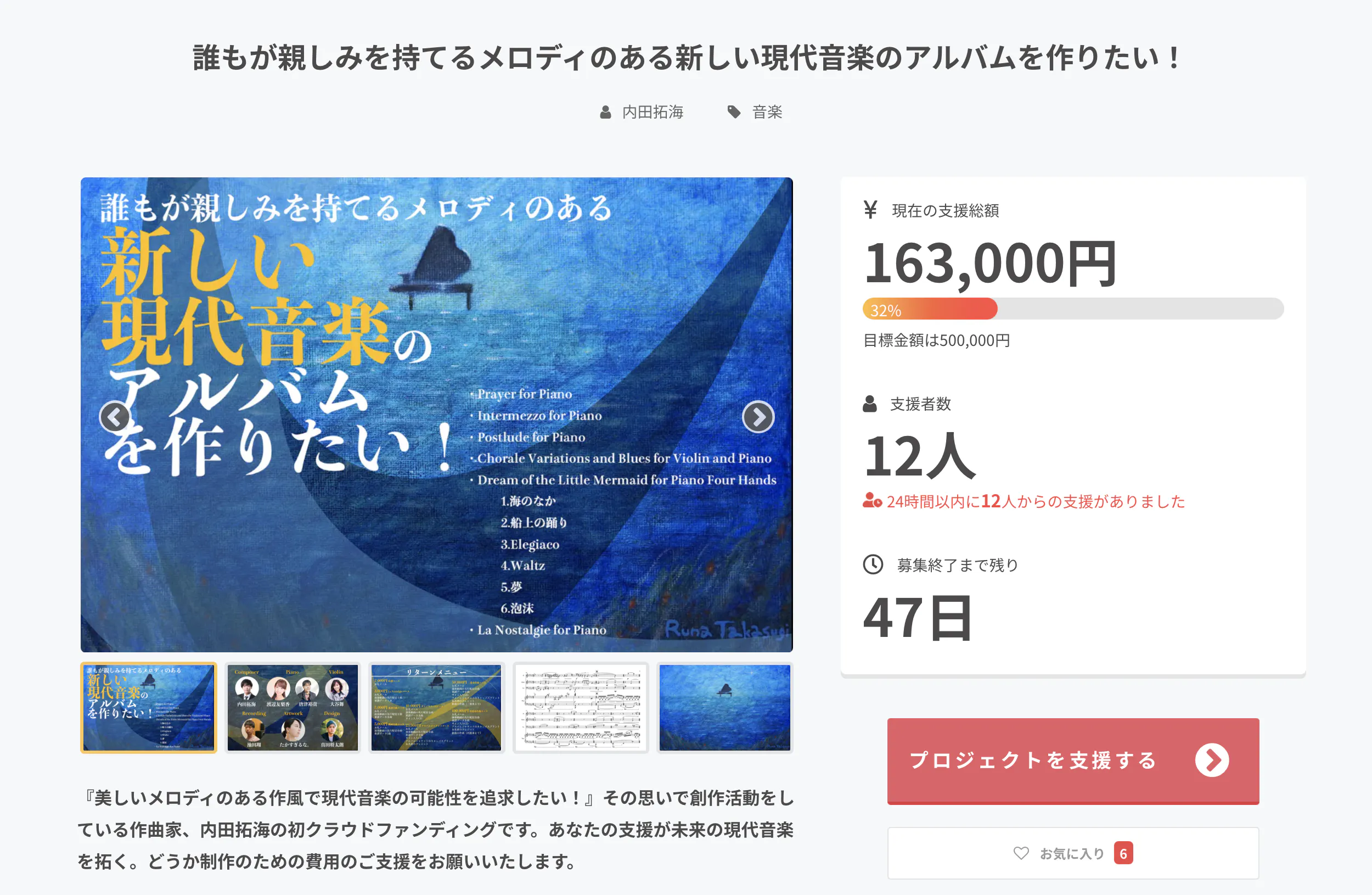 プロジェクト達成に向けて、また良いアルバムを作るためにも最後まで頑張りますので、引き続き応援のほどよろしくお願いいたします!