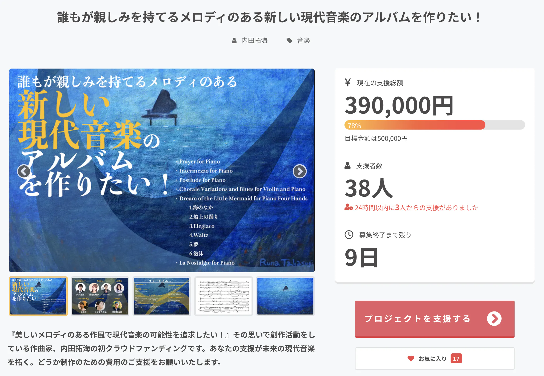 現在、多くの方にご支援いただき支援総額はなんと39万円、目標額の78%までご支援いただくことができました。ここまで応援し続けてくださり、本当にありがとうございます。