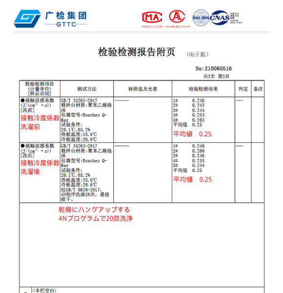 【冷感効果が持続する検査報告書】