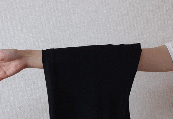 また、参考として、下の画像は引っ張った前と後の瞬冷パンツの状態を表す画像です。このように、引っ張った前後での違いはほとんど感じられません。