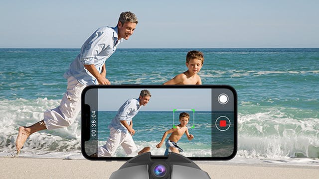 独立したAIビジョンセンサーにより、電源を入れるだけで、AIが顔の認識をして、形状追跡、ジェスチャー認識をスタート。お使いのスマホのアプリやカメラをセットすると、AIビジョンセンサーが移動する被写体のスムースな撮影をアシストします。ジンバルと違って据え置き型なので、自撮り撮影にはとっても便利!