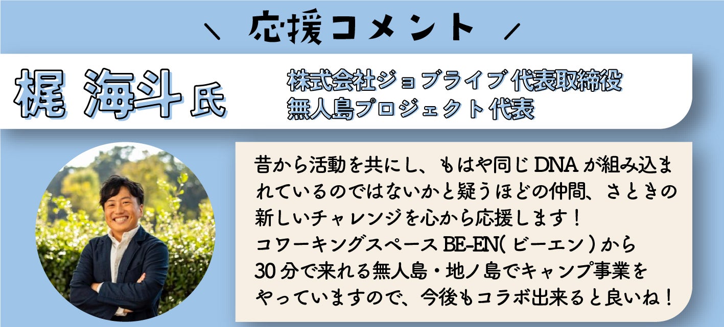 *応援コメントの記入、コラボリターンのご提供、記載写真に写っている個人・団体様は本プロジェクトと直接的な関わりは御座いません。直接のお問い合わせはお控えいただきますようお願いいたします。
