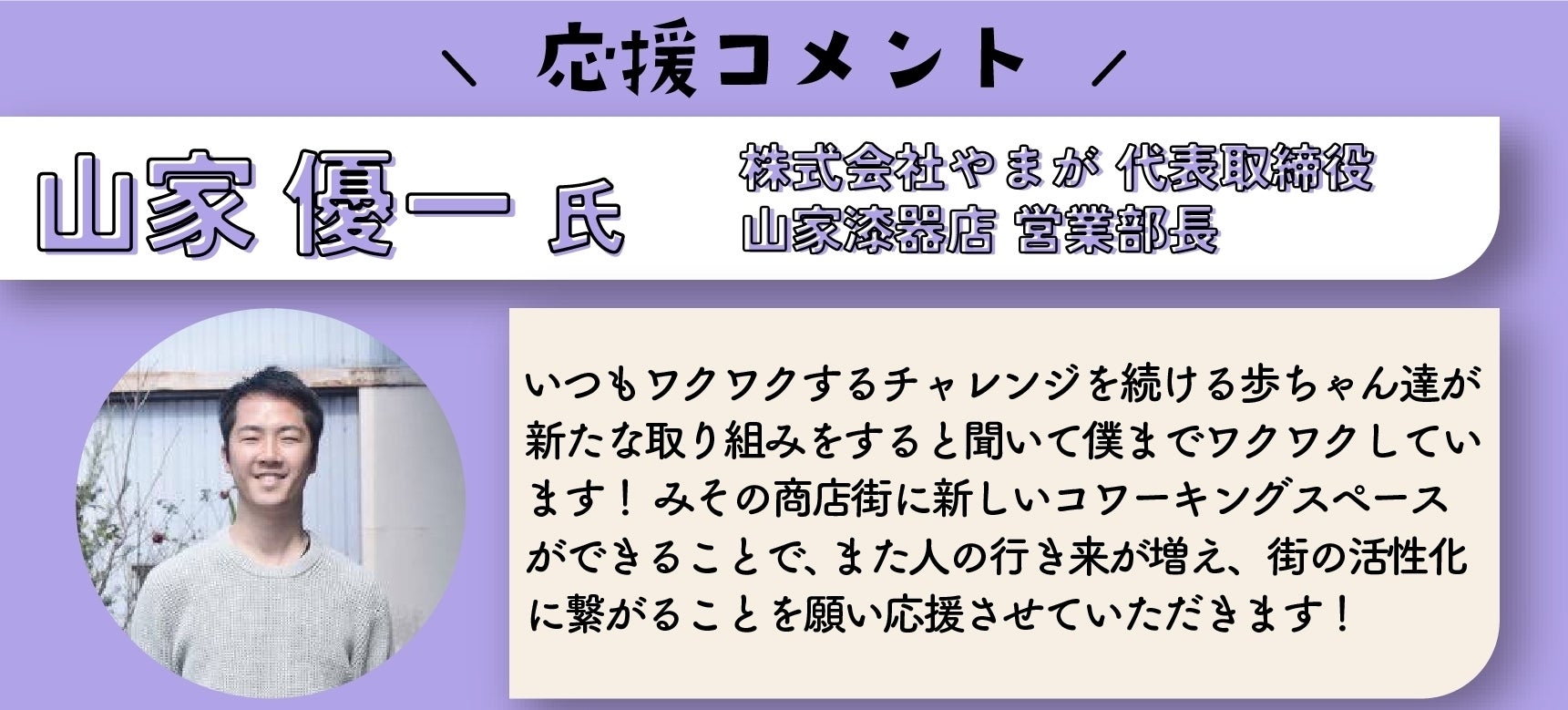 応援コメントを頂戴いたしました。