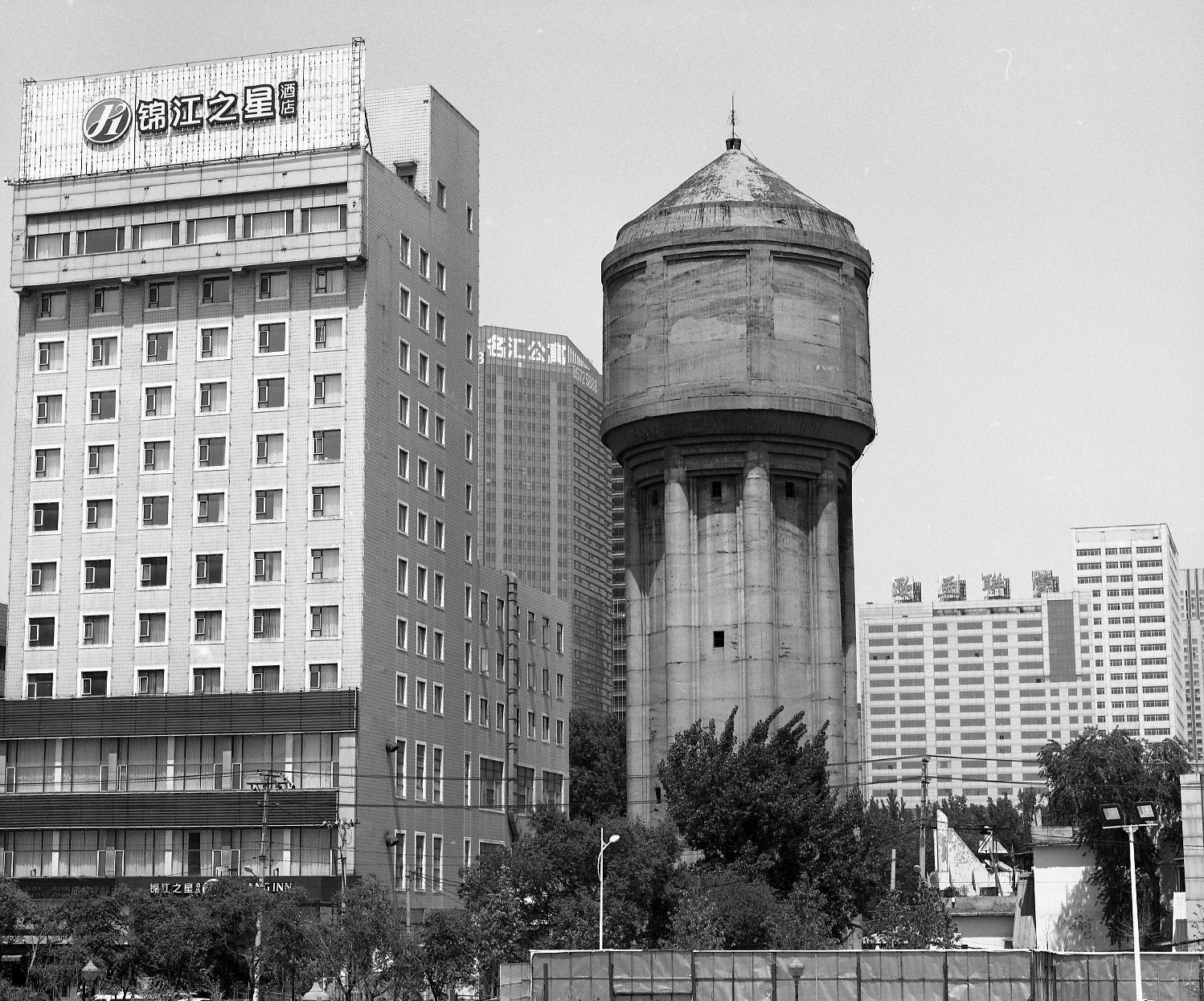こうした給水塔は日本が満洲の街づくりの過程でつくったもので、駅舎の近くにときおり残存しているのを見ることができます。すぐ隣にホテルが建っていますが、その大きさがわかるかと。このぐらいの給水塔で何人ぐらいの人々の生活が賄われたのでしょうか。